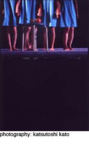 KURONOZ is a group of dancers who wear black-framed glasses, blue dresses, and black boots. They have black bobbed hair; copy-KURONOZ wear cheap wigs. All the KURONOZ repeat simple gestures frantically and they exchange the gestures. Among them, there is a real-KURONOZ who doesn't wear a wig in the group.